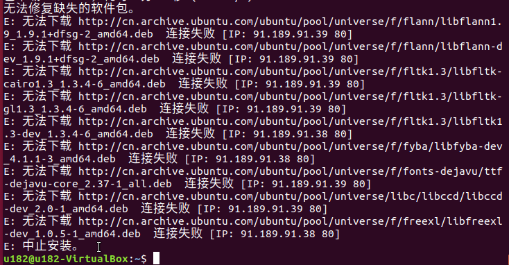 - 若安装过程中,控制台终端出现如下错误信息,则需要更换/etc/apt/sources.list中的软件源列表。