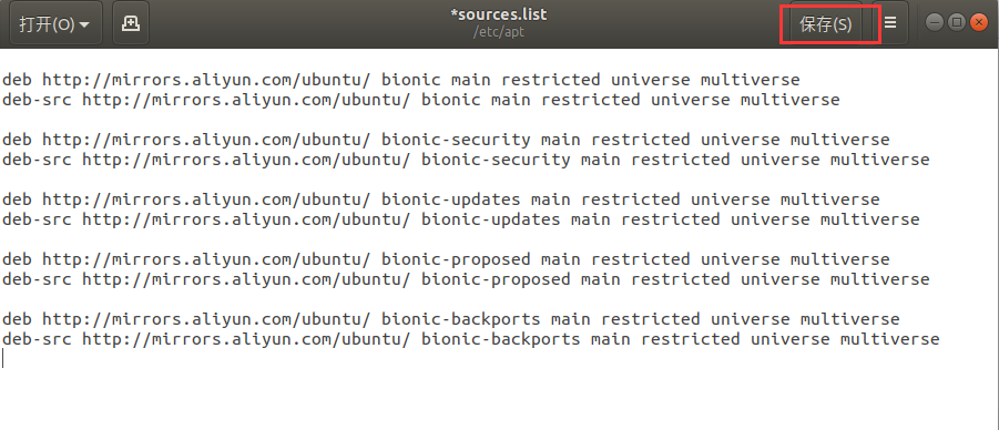deb http://mirrors.aliyun.com/ubuntu/ bionic main restricted universe multiverse