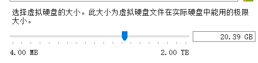 分配虚拟硬盘大小,由于需要安装ubuntu系统,而且还会在该系统中进行操作,建议大小不要低于20G。