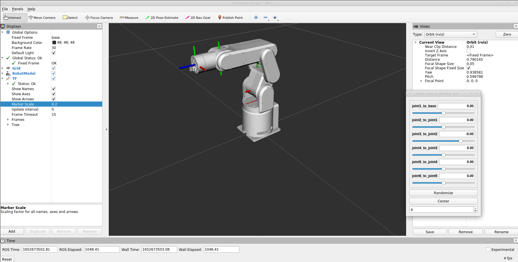 roslaunch mecharm simple_gui.launch port:=/dev/ttyUSB0 baud:=115200