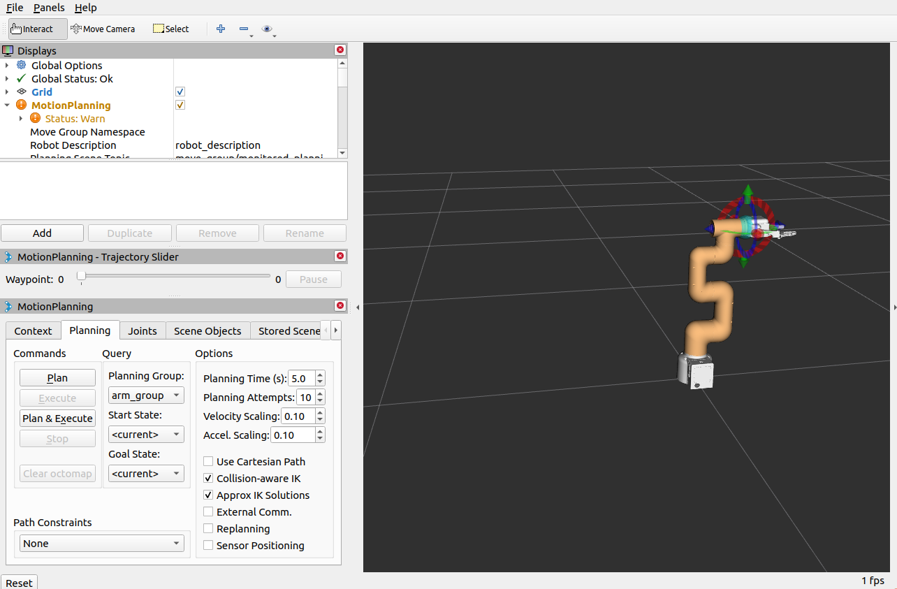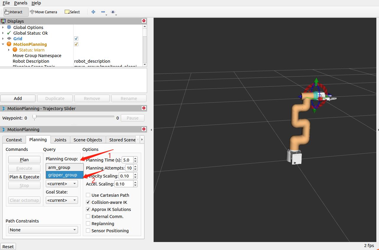 注意: 如果末端装配自适应夹爪,需要对夹爪进行规划时,需要将规划组切换至夹爪的规划组。