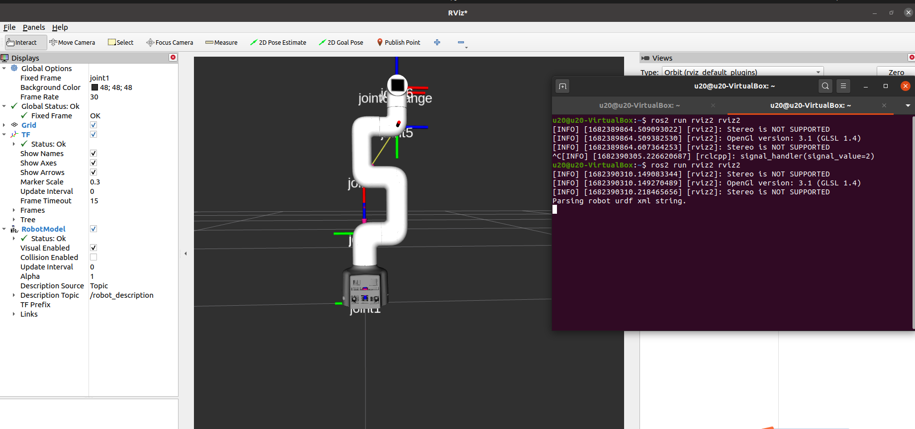 它将打开 rviz 展示模型跟随效果,接着你让模型跟随真实的机械臂运动。