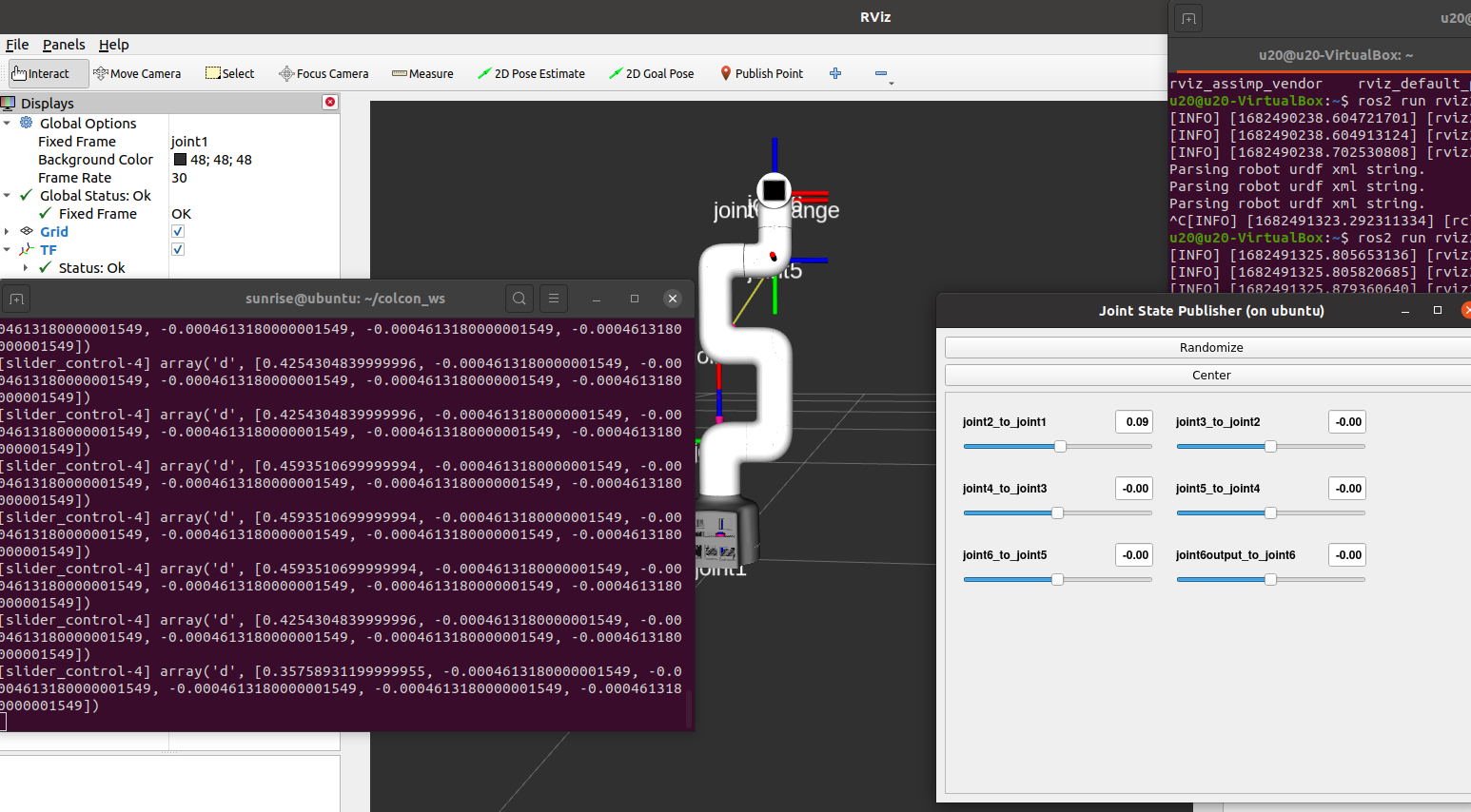 它将打开 rviz 展示模型以及打开一个简单的GUI控件界面,与真实机械臂相互联动。