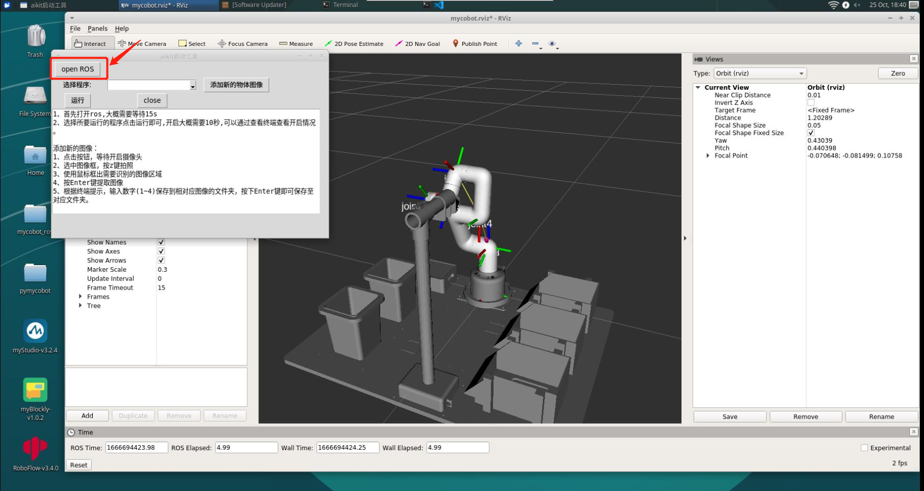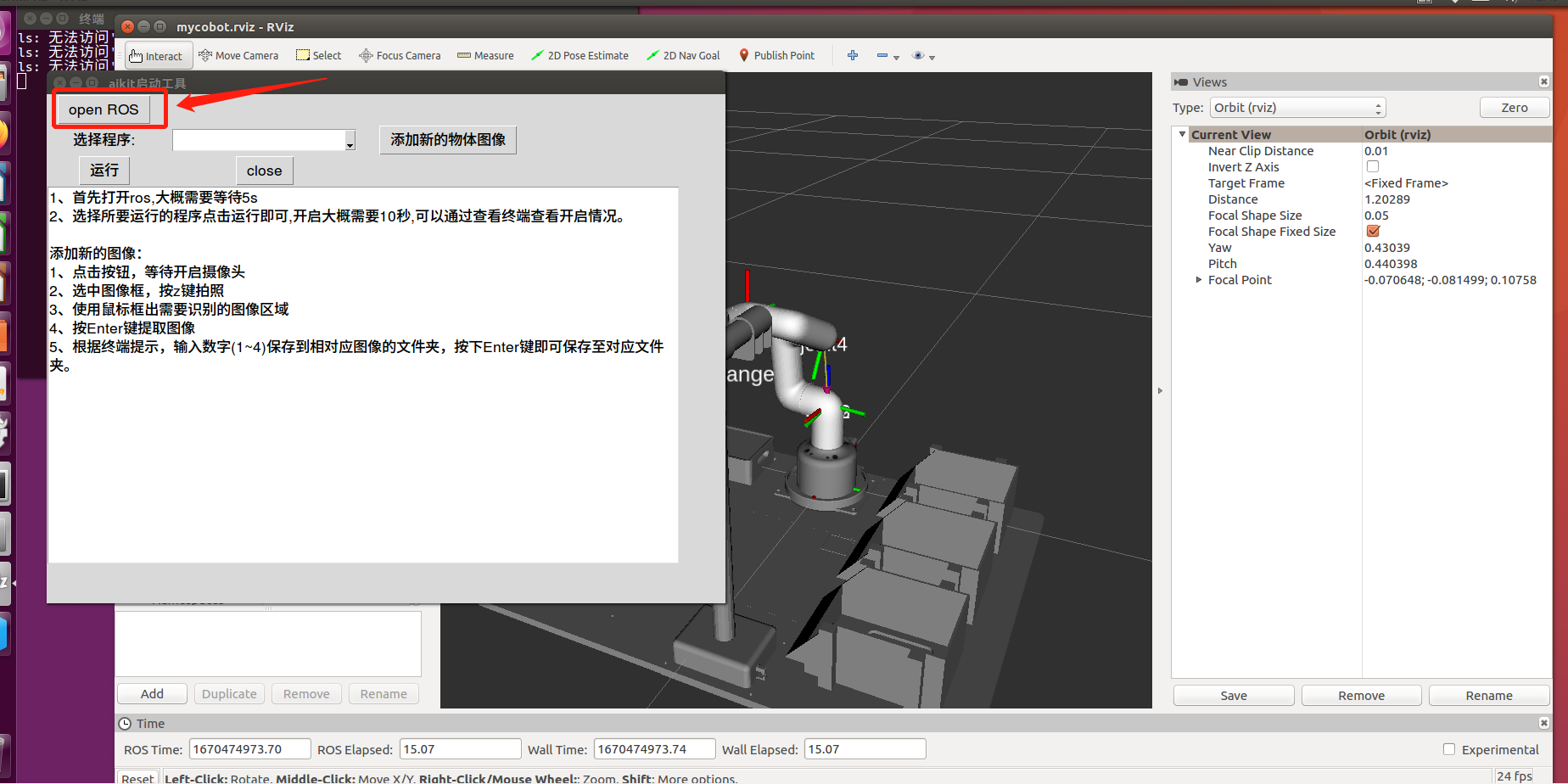 开机使用时,需确保机械臂串口设备已经连接到虚拟机,然后赋予机械臂串口权限。