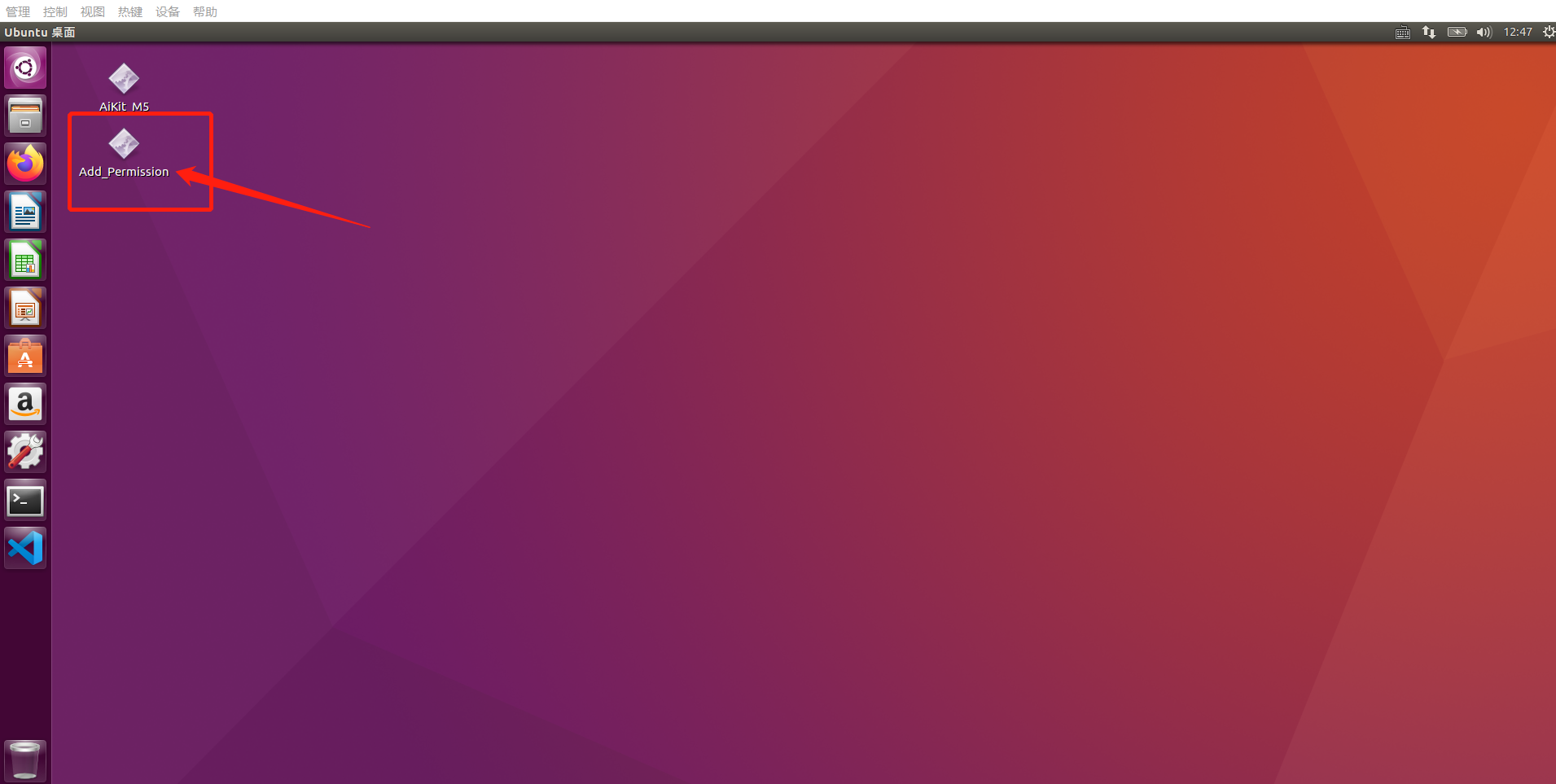 双击桌面 Add_Permission 工具,根据终端提示 输入用户密码 -->按下Enter键,然后关闭终端即可(默认密码为: 123)