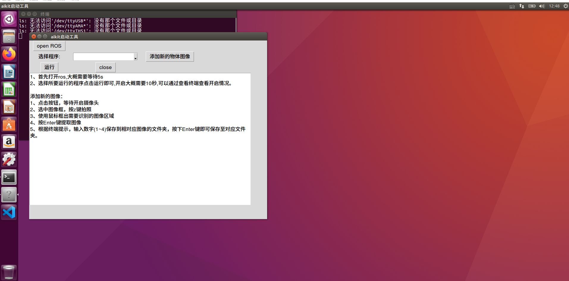 3.3 选择所要运行的程序后,点击运行即可,可以通过查看终端查看开启情况。