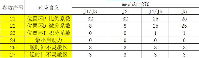 需要注意的是:每一款机械臂的的所有关节参数不是统一的,需要按照下图对应的机械臂型号做对照和修改。
