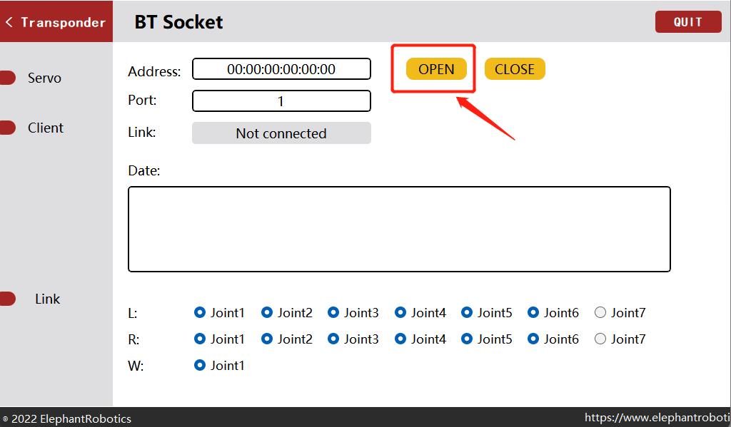 4.点击"OPEN",开启蓝牙服务器