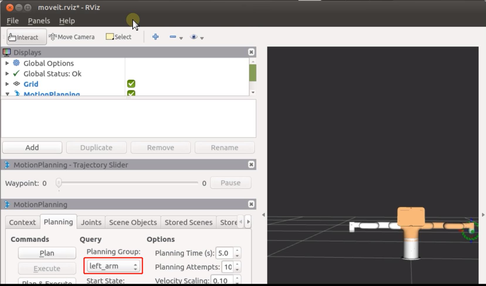 1.左臂控制组:通过拖动轨迹球来规划左臂的运动方向。