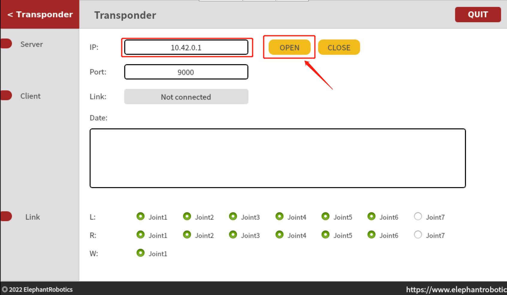 注意: 服务器中的IP并不是唯一的,可根据机械臂实际连接的网络确定。