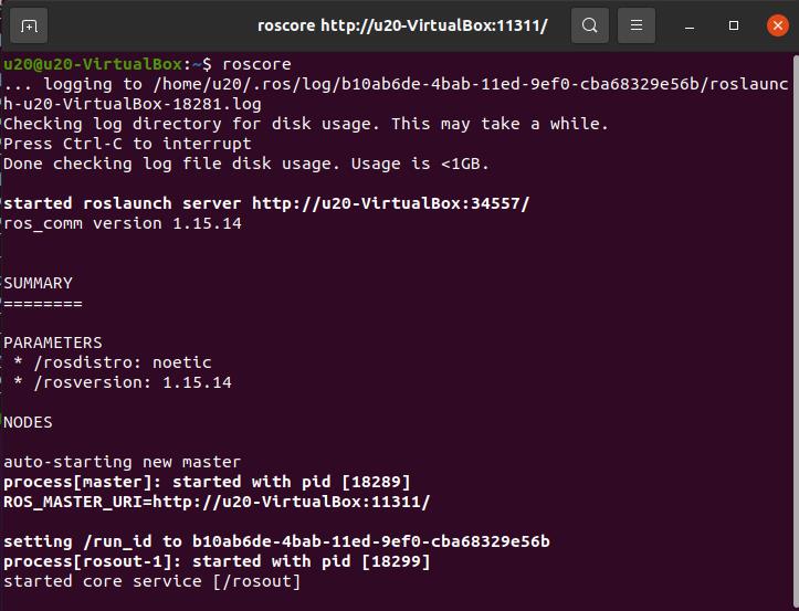 ROS 系统的启动需要一个 ROS Master,即节点管理器,我们可以在终端输入 roscore 指令来启动 ROS Master。打开一个控制台终端(快捷键Ctrl+Alt+T),在终端执行以下命令: