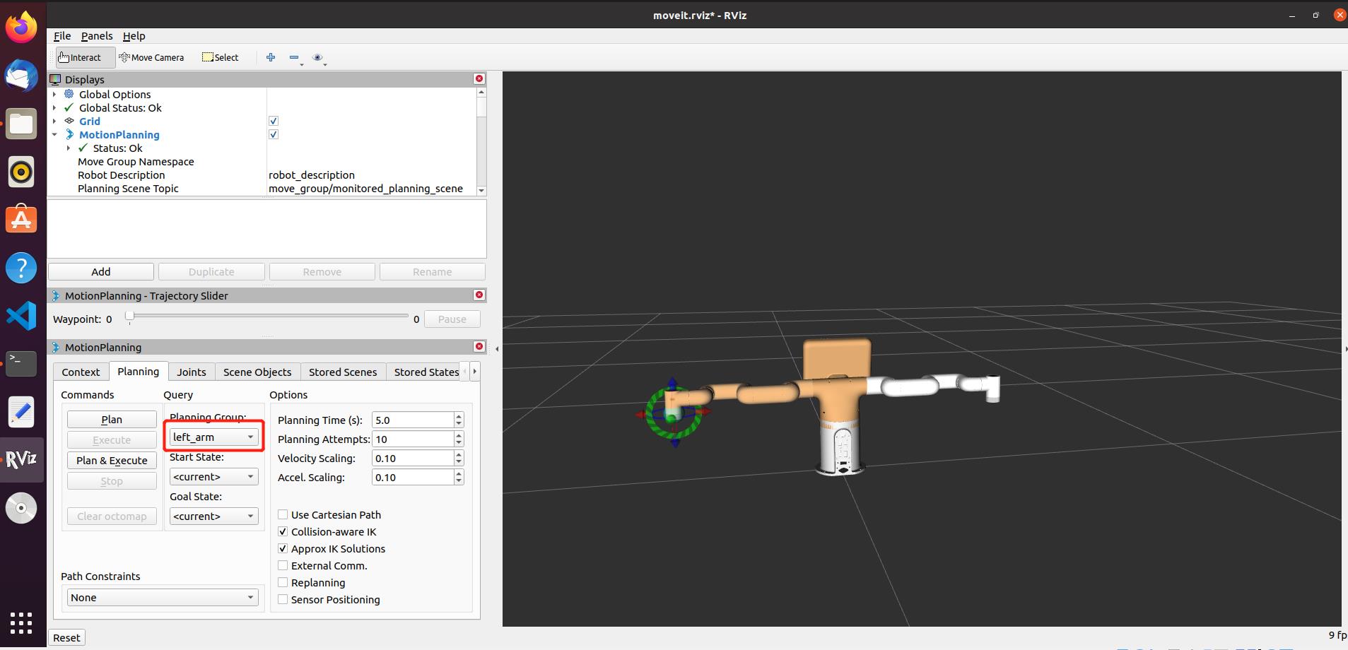 1.左臂控制组:通过拖动轨迹球来规划左臂的运动方向。