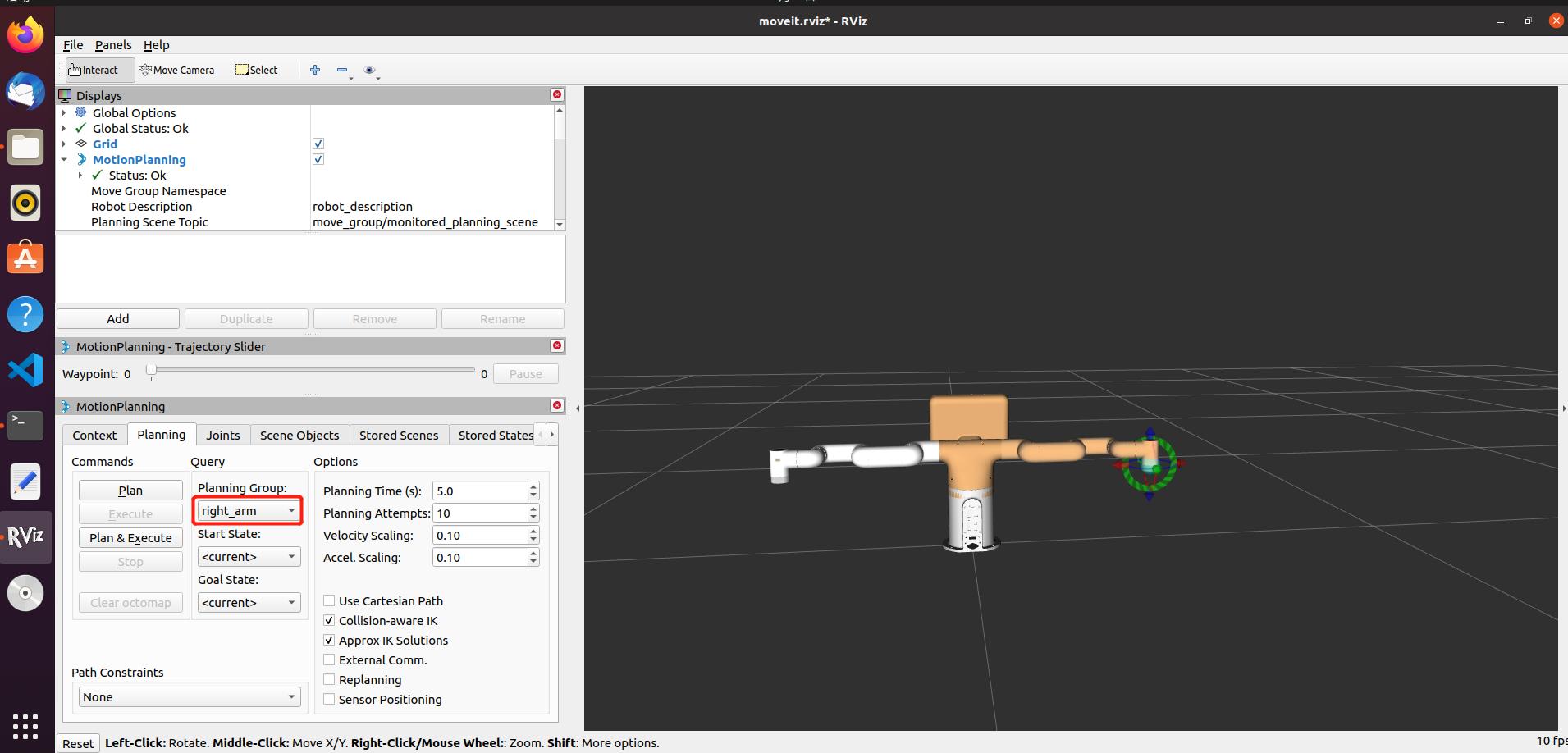 2.右臂控制组:通过拖动轨迹球来规划右臂的运动方向。