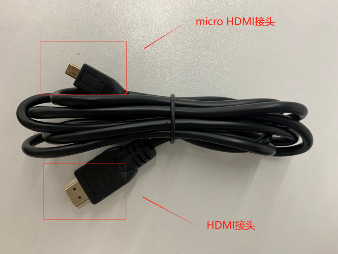 3.1.1 准备好配件中的显示器连接线,如图2-1所示,一端为HDMI接头,一端为micro HDMI接头。