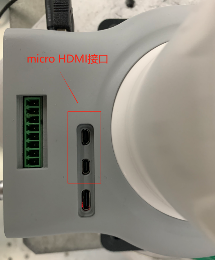 3.1.2 HDMI接头与电脑相连,micro HDMI接有与机器人相连,机器人接口位置如图2-2所示。连接好后给机器人上电即可显示。
