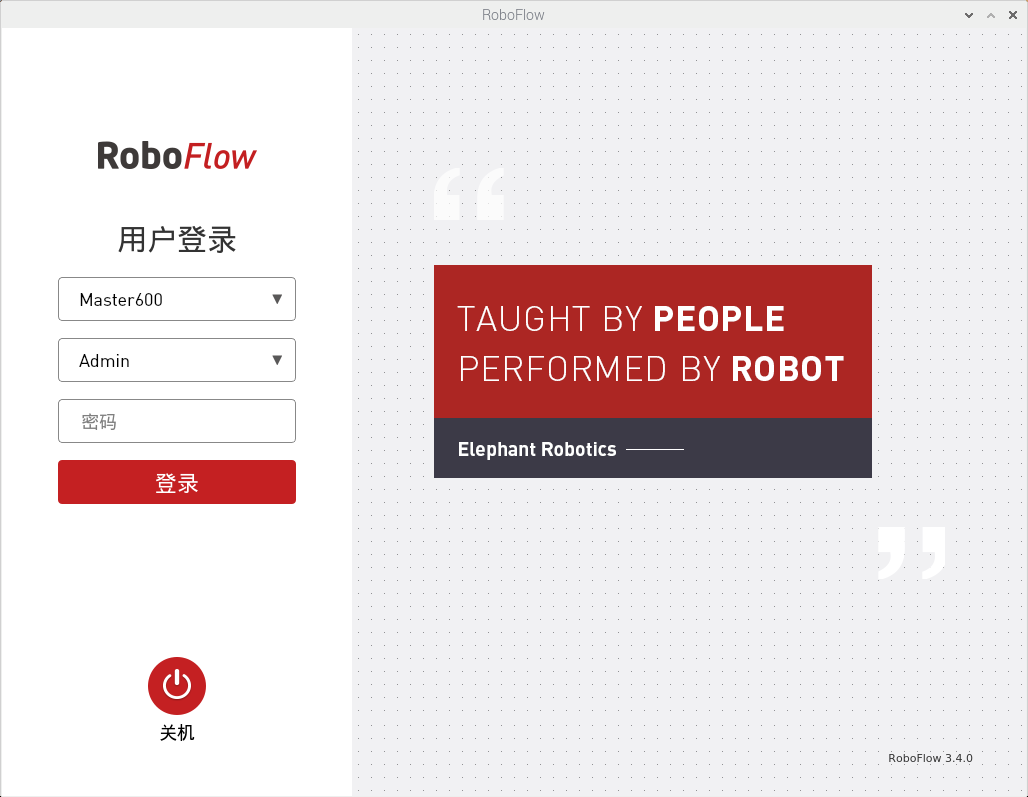 当系统成功启动后,将会进入如图2-6所示的RoboFlow操作系统的登录界面。
