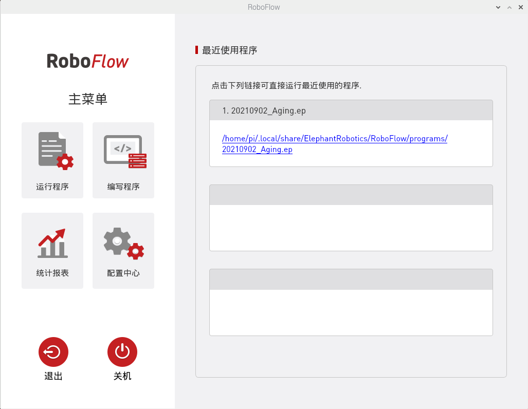 如果要修改录制的轨迹文件名字,需要在此文件夹中重命名(如果在home目录下看不到.local文件夹,Ctrl + H可以显示隐藏文件) 路径:/home/pi/.local/share/ElephantRobotics/RoboFlow/programs