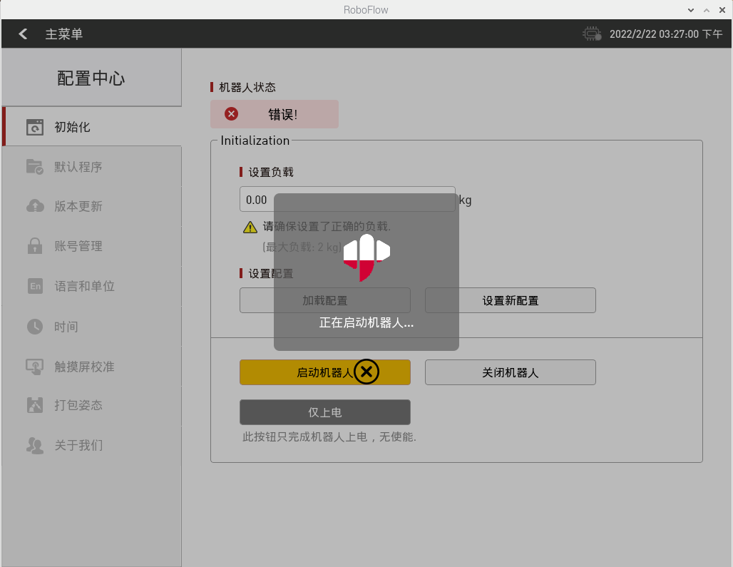 第一种重新启动软件的方式,重启机械臂系统(等待系统重启即可):