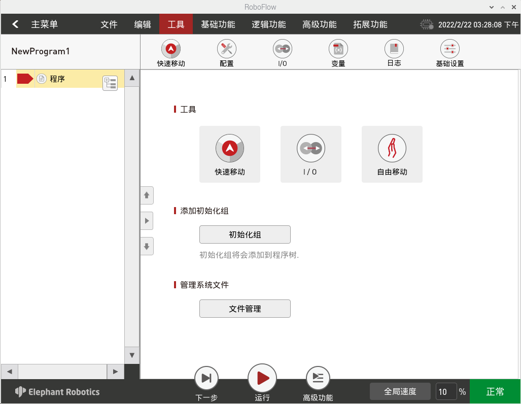我们登录RoboFlow软件后,进入到主菜单页面,点击Empty Program 空白程序创建新的程序