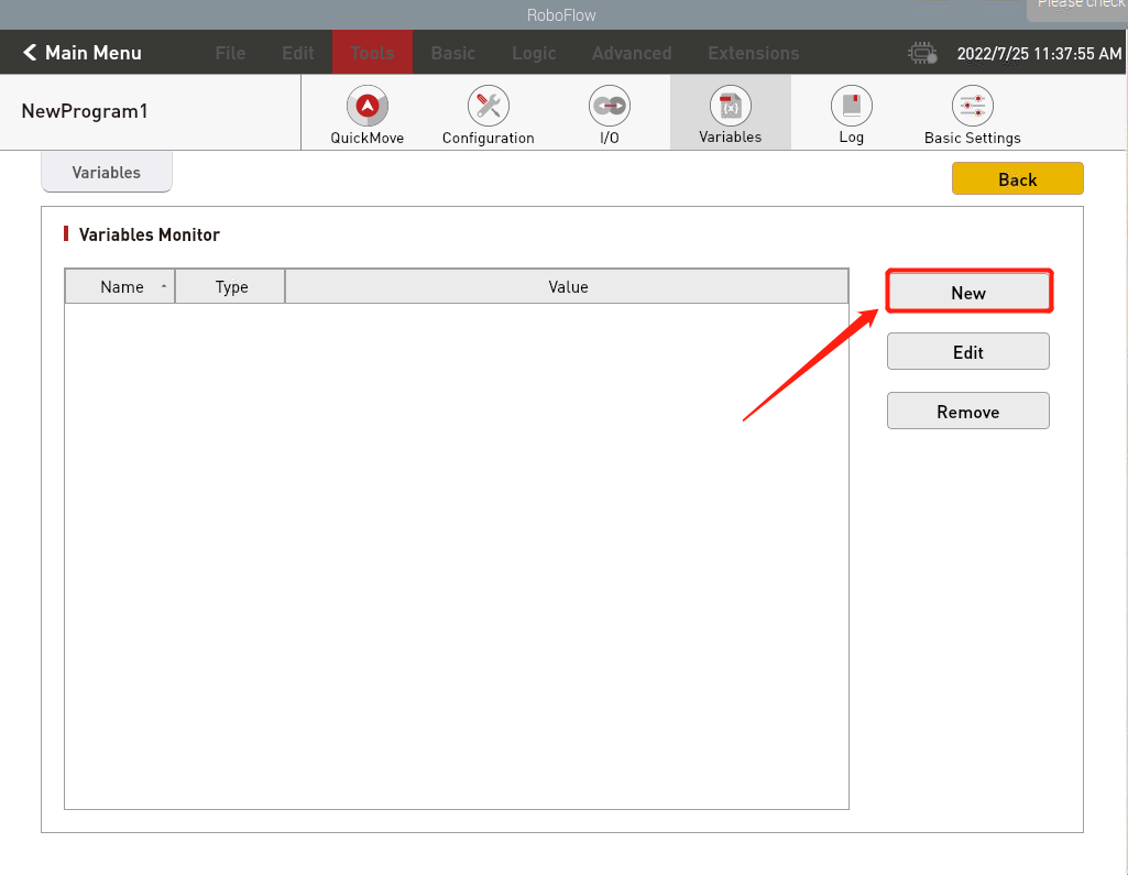 - 创建一个新的变量,输入变量名称,选择变量类型