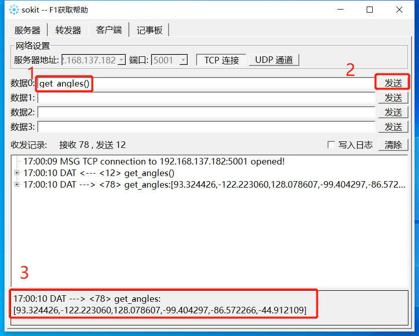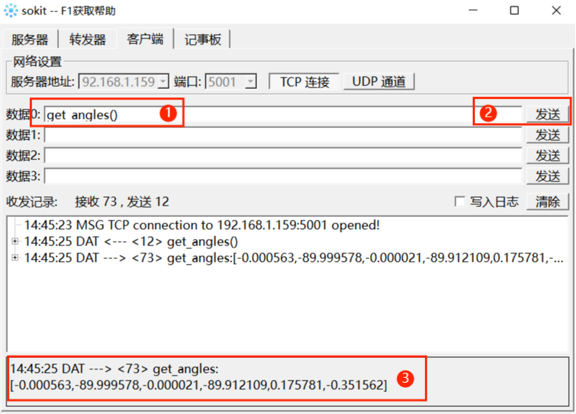 Socket字符串格式:get_angles()