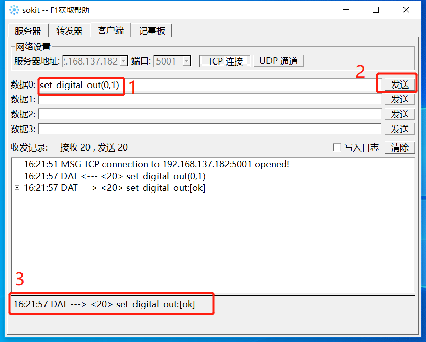 Socket字符串格式:set_digital_out(pin_number,signal)