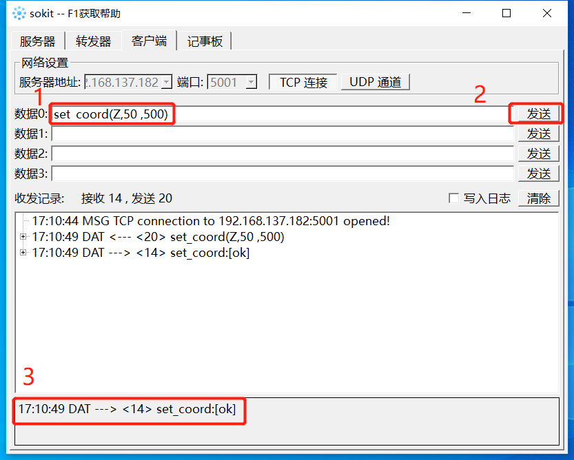 - 示例: set_coord(x,50.5,500) ,如果成功调用,将会收到:set_coords:[ok]。如果发生错误,将会收到:set_coords:error_message