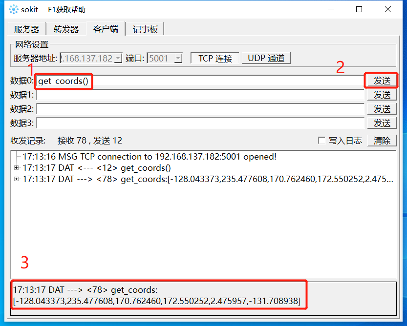 Socket字符串格式:get_coords()