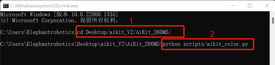 - 若命令终端没有出现ok,且无法识别颜色时,需要将摄像头稍微向后或向前移动一下,当命令终端出现ok时程序即可正常运行。