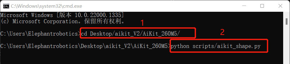 - 若命令终端没有出现ok,且无法识别形状时,需要将摄像头稍微向后或向前移动一下,当命令终端出现ok时程序即可正常运行。