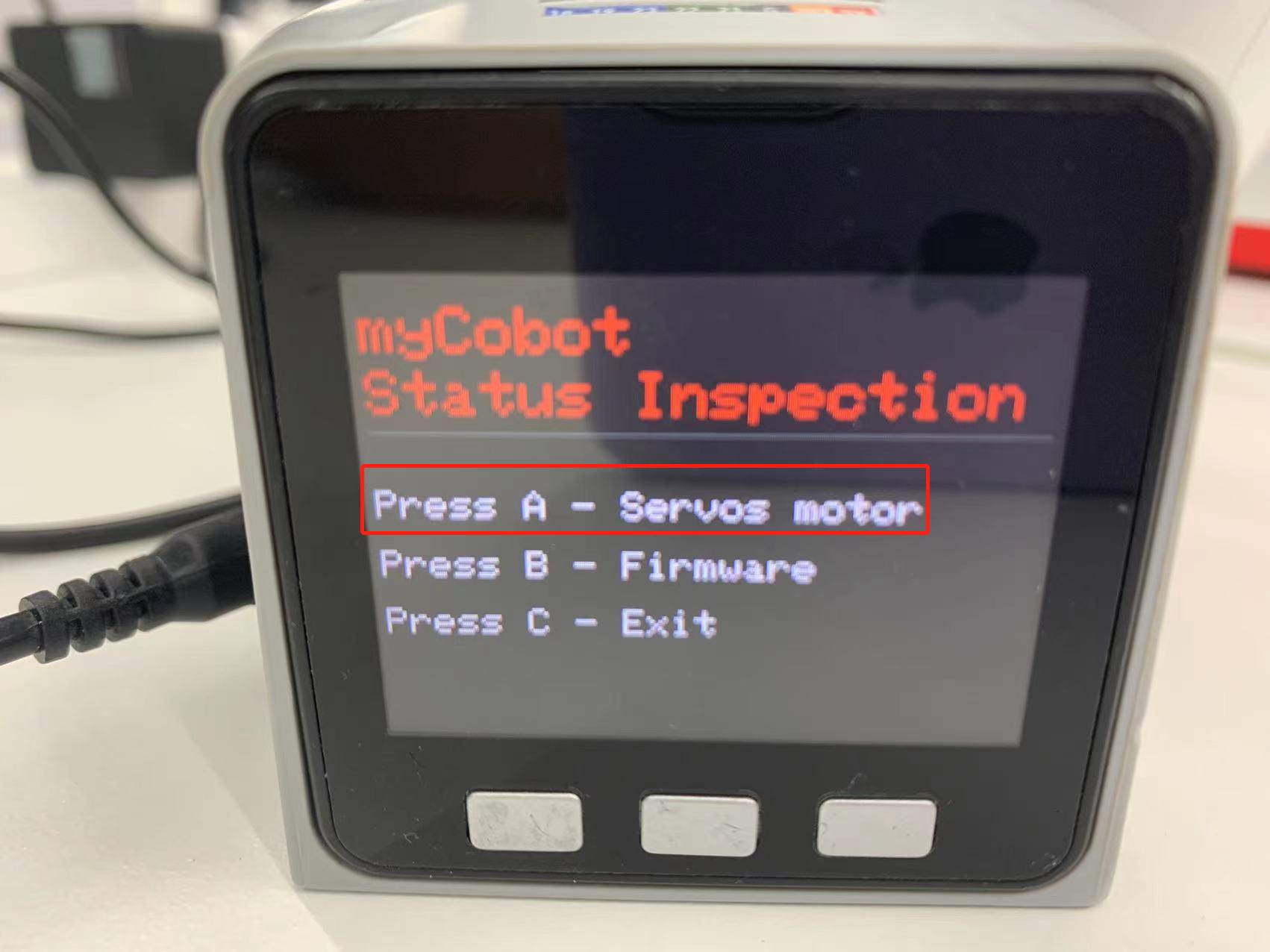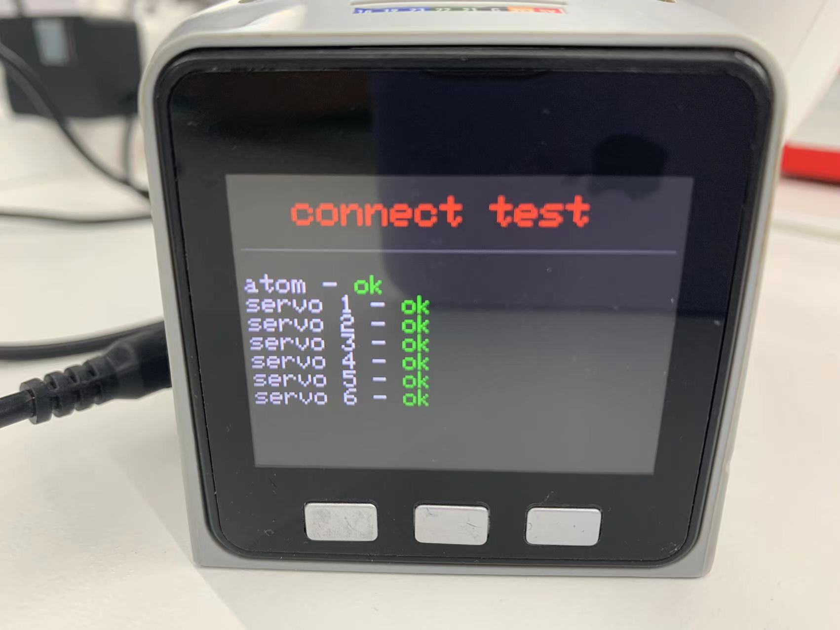 Step 3: 按下A键,开始连接检测。屏幕显示Atom以及六个电机连接状态。