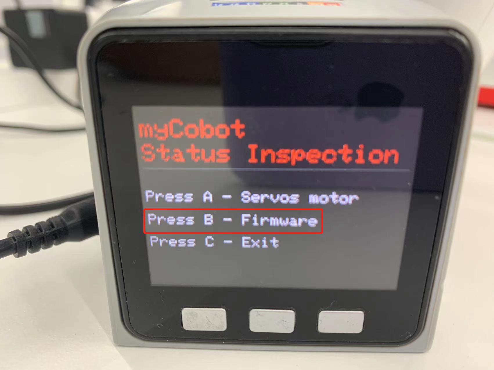 Step 4: 按下B键,开始检测版本信息。屏幕显示机器人版本以及Basic固件版本。