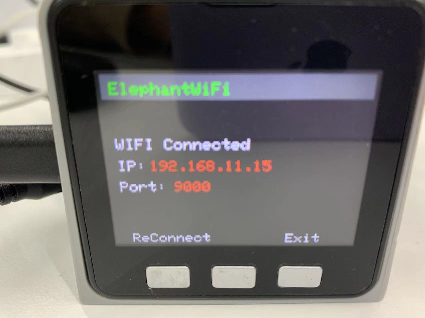 Step 2: 出现WIFI Connected以及IP和Port信息说明WIFI已经成功连接。